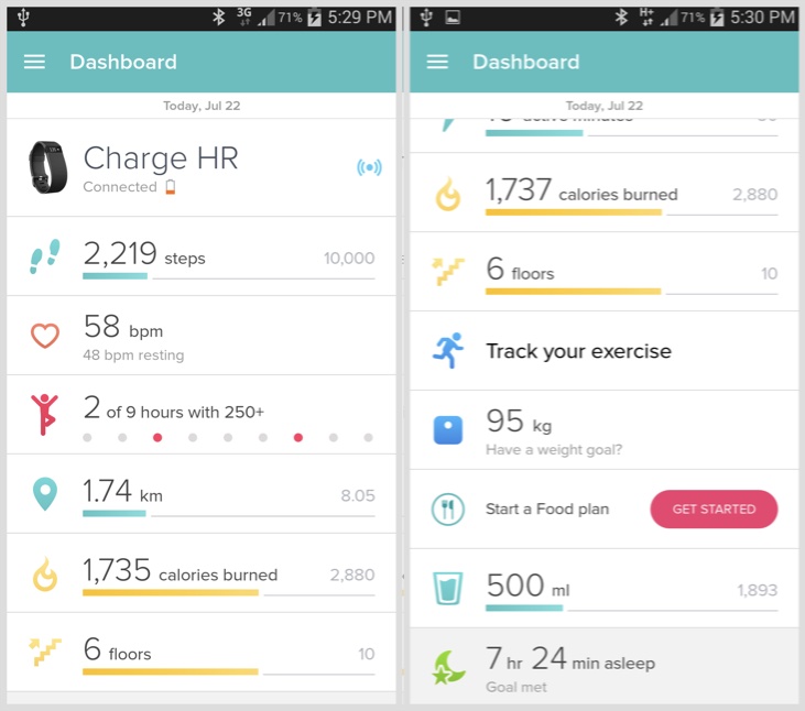 Your average self-tracking device does daily tallies for: steps-taken, kilometres-covered, calories-consumed and so on.